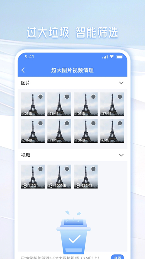 快速扫描手机中的缓存、残留文件等垃圾,并提供一键清理释放存储空间。
