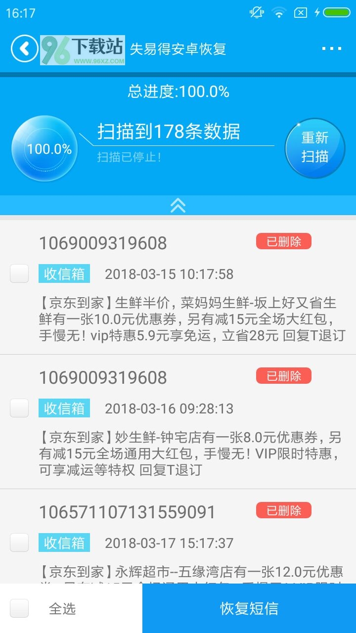 2、短信恢复提取被标记删除但未被覆盖的文本记录,包括收发时间和内容。