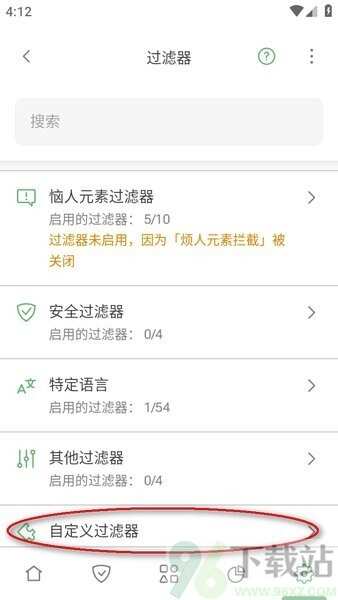 3、别看上面那些,直接滑到底,看到“自定义过滤器”了吧?戳它。