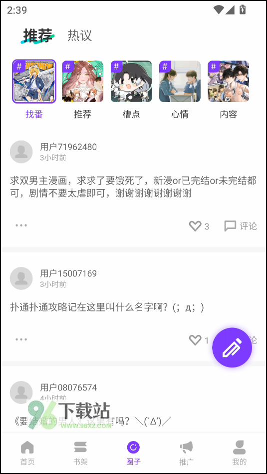 3、在圈子界面下,我们能够参与到漫画聊天过程中去,可以催更作者。
