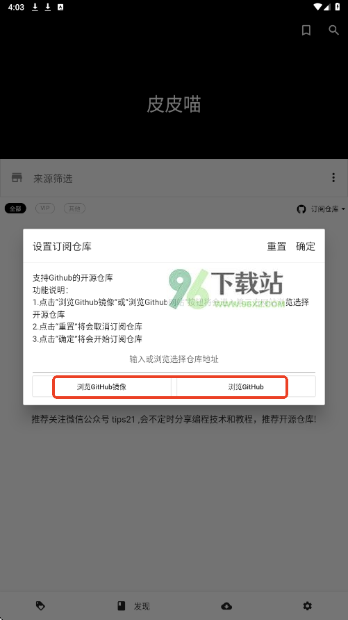 2、点击浏览Github镜像,
