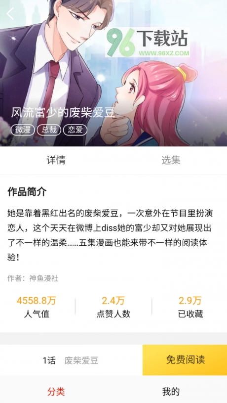 2、选择一部感兴趣的漫画点击进入详情页,可以看到简介、更新状态和全部章节列表。