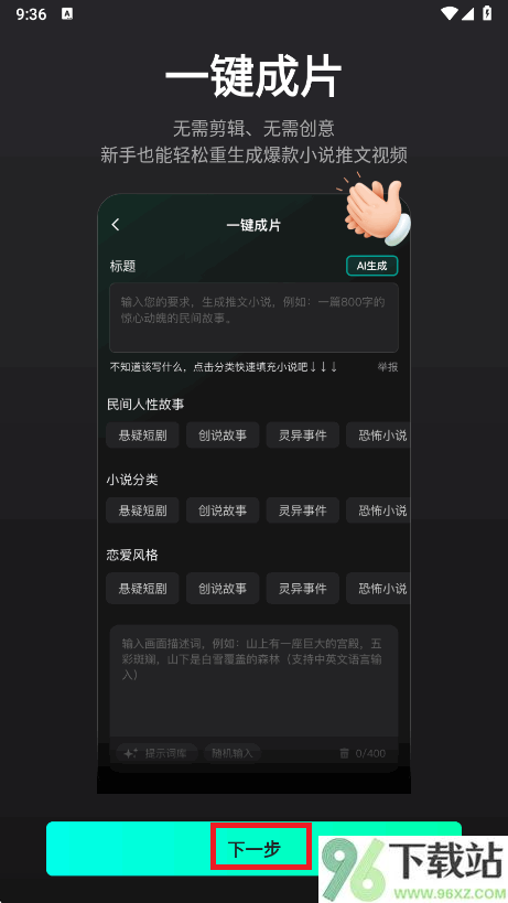 5、看完样例后可以尝试上传自己的文本内容,选择生成模式,等待几分钟就能看到对应的漫画解说初稿。