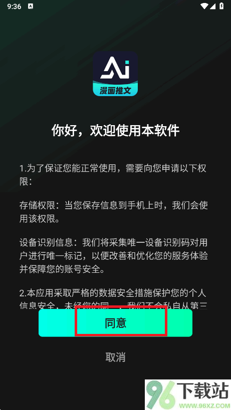 1、打开APP后看到欢迎页面,直接点同意按钮进入主界面,这一步不能跳过,必须确认协议才能继续使用。