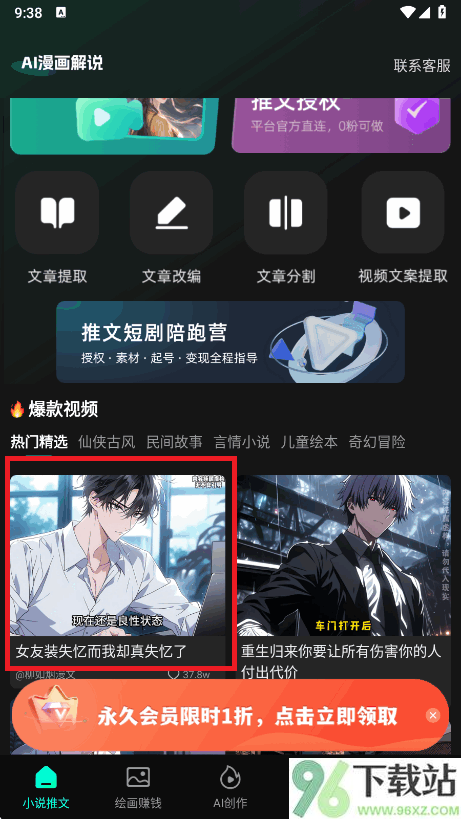 4、在首页找到带红框标注的示例卡片,点击进去就能查看系统自动生成的漫画解说成品样例。