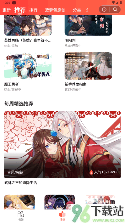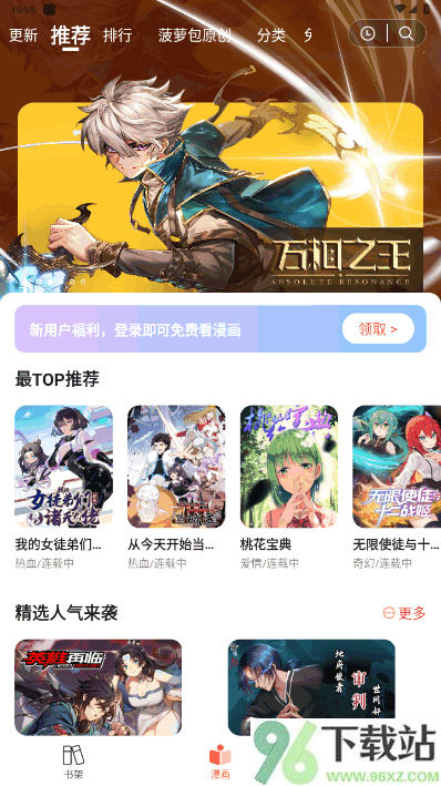 1、先在96下载站把菠萝包漫画APP下好,装上之后点开,第一次用得点一下同意用户协议和隐私条款才能进。
