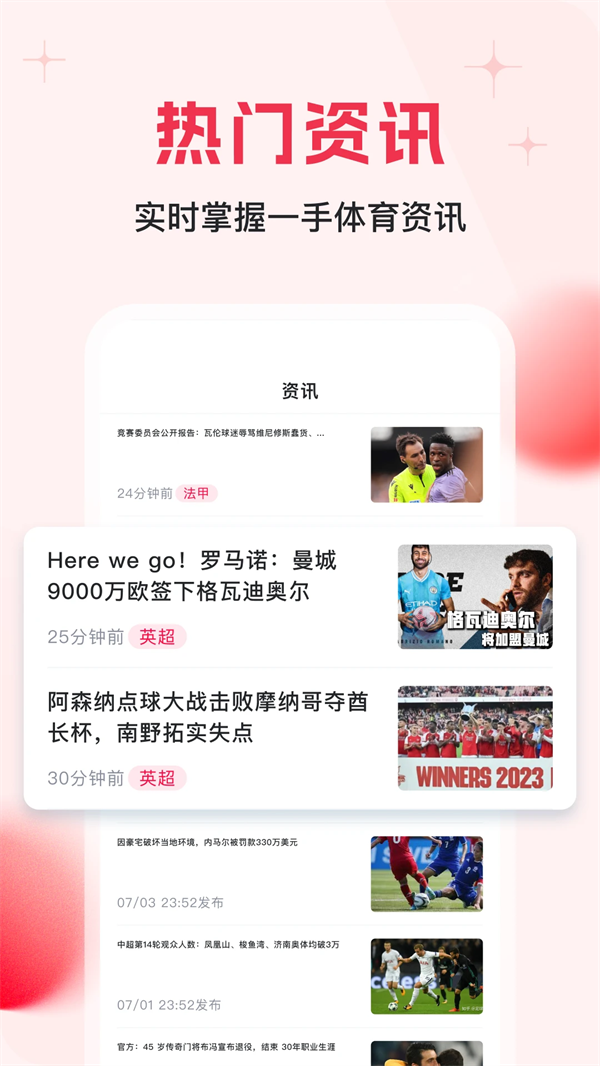 答:这款软件目前主要侧重于足球和篮球这两大热门球类,不管是NBA、CBA还是欧洲那些顶级联赛,各种最新的消息在这儿都能一网打尽。