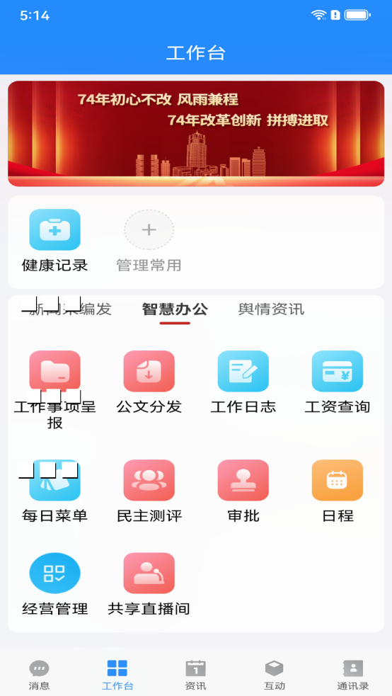 5、成功登录后即可浏览新闻、使用健康记录或进入采编办公模块。