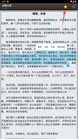 3、看到喜欢的句子或段落时,用手指长按文字区域,会弹出选择框,点击复制就能存到剪贴板。