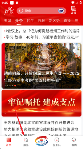 1、打开大武汉App以后,先找到下方导航栏里的“服务”入口,点进去就能看到各种实用功能,找车位就是从这儿开始的。