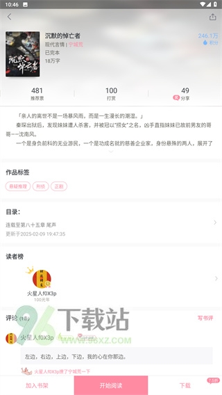 3、点进任意小说封面,会先看到简介、作者信息、标签和读者评分,确认是想看的再点开,避免踩雷。