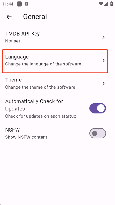 3、进入设置后,找到并点击“Language”(语言)选项;
