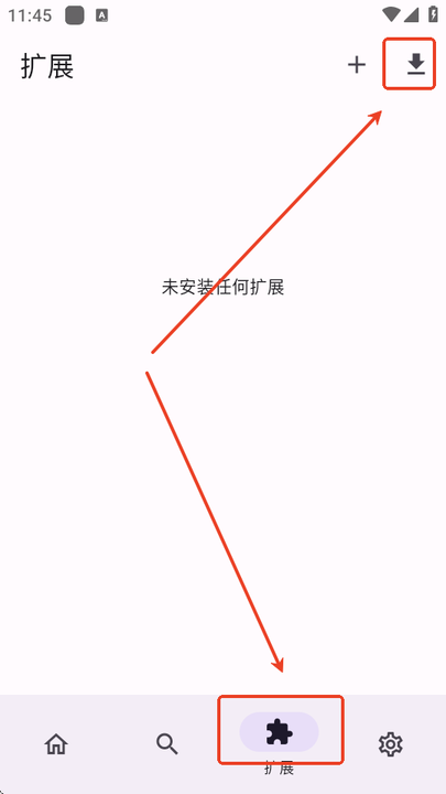 5、返回主界面,点击底部“扩展”标签,再点上方的“下载”按钮;