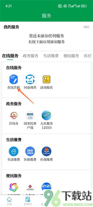 2、在服务列表中找到并点进【在线答题】;