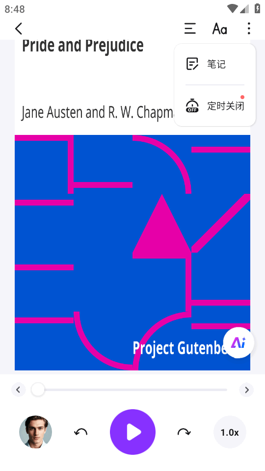 3、听书的声音不是机械念稿那种,而是模拟真人语调,还提供不同语言和音色可选,听起来自然不少。