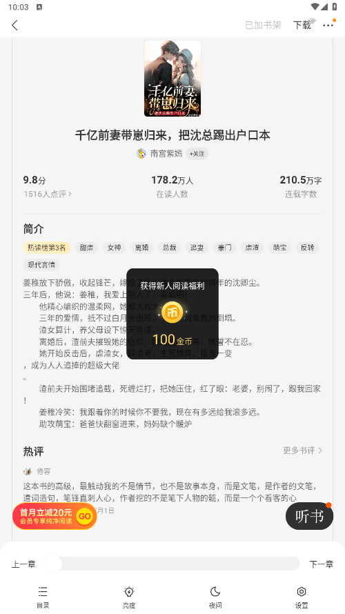 虽然基础阅读免费,但部分页面会有少量广告。如果你想要完全无广告+畅听有声书,可以开通VIP会员,体验更纯净。