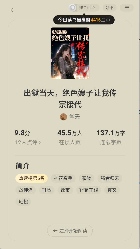 当然可以,阅读页面右上角有个听书图标,一点就切换成语音播放,还能自定义语速和声音风格。