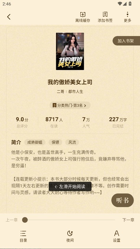 3、除了传统的阅读方式,它还内置了听书模式,声音自然流畅,适合边做家务边追更。