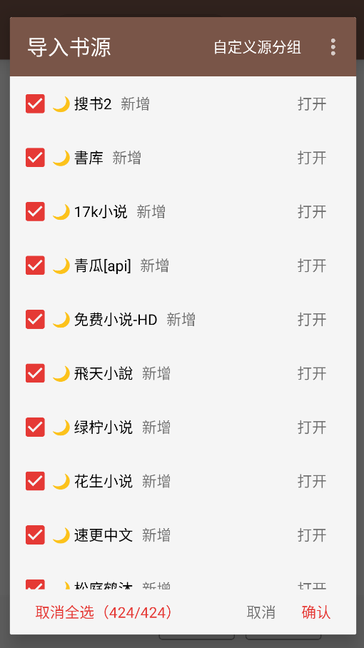最后点一下右下角的确认按钮,书源就加好了。
