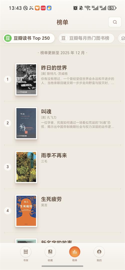 2、除了豆瓣Top250这种经典榜单,它还会根据你平时听的内容推荐相似主题的书,省得自己瞎找。