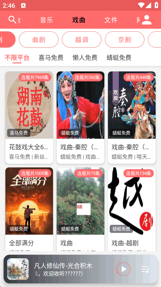 3、点进去就能听了,要是遇到卡顿或者没声音,别急,顶部有个换源按钮,换个线路试试