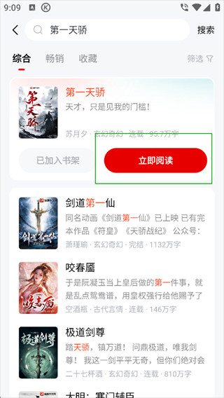 2、在搜索结果里找到目标作品,直接点它右下角的“立即阅读”按钮就行