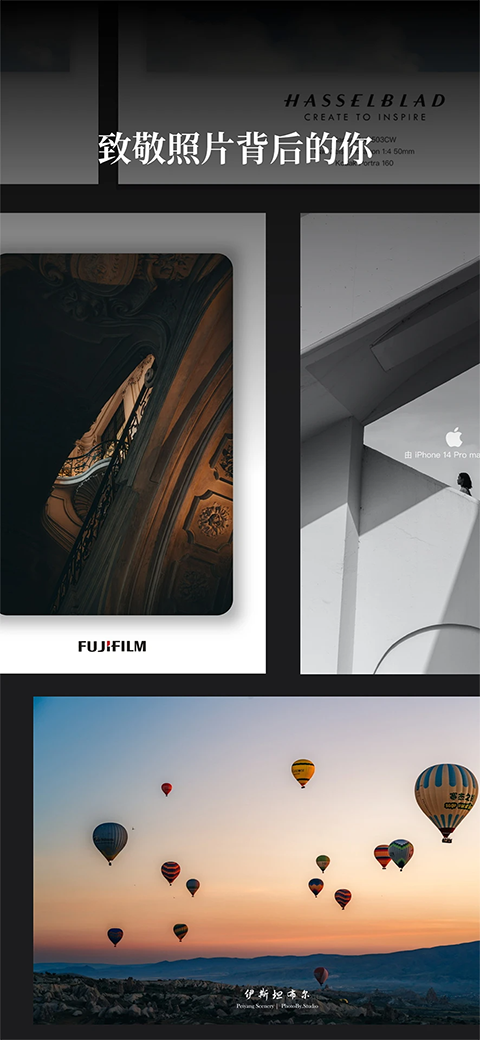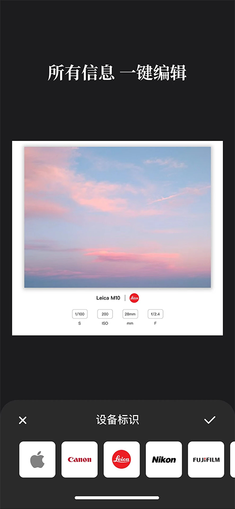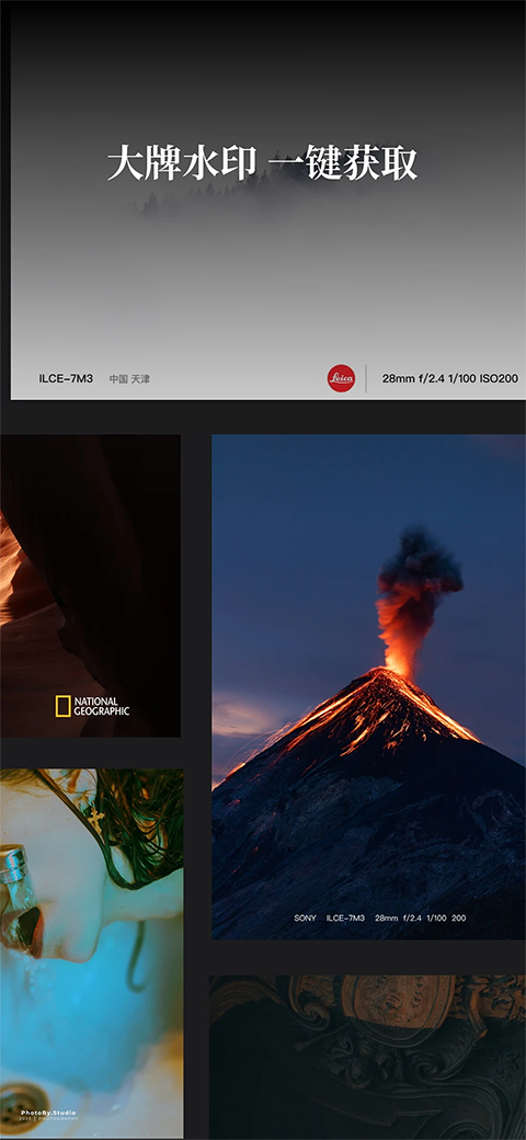 内置市面主流相机水印,自动读取照片信息,一键套版,原尺寸输出不压画质。