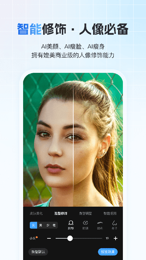 答:强度别拉太满,建议先用低档试试,结合美肤一起调,脸型自然就出来了。