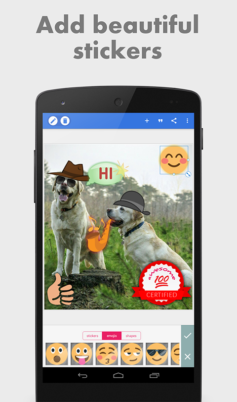 表情形状贴纸随便加,自带图片从相册导入合成,创意叠加无限可能超有趣。