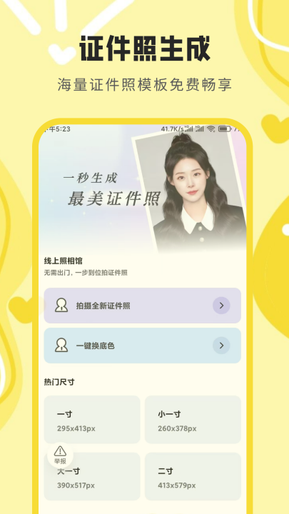 支持在家自拍生成各种规格的证件照,自动优化面部表情与光线,美颜微调让证件照也能展现最佳状态。