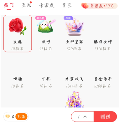 3、赠送礼物:向心仪对象送出任意礼物,系统会返还2钻石作为互动激励。