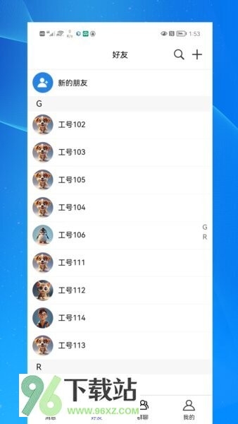 提供按组织架构分组的好友列表,支持通过工号进行精准搜索与添加。