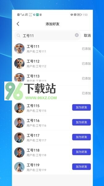 2、需要联系同事时,进入好友页,使用搜索框输入对方工号,添加其为好友后即可发起单聊。