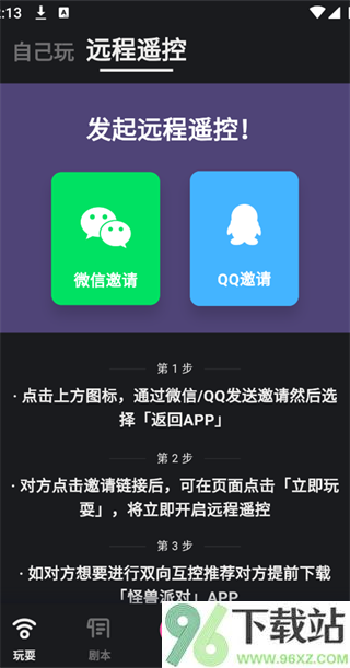 1、在App底部菜单栏点进“玩耍”页面,找到远程遥控选项,生成邀请链接后直接通过微信或QQ发给对方就行,操作很直觉。