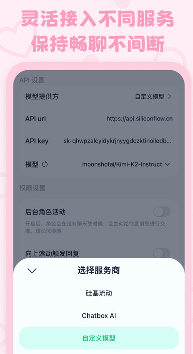 在API设置里选“自定义API”,然后去模型广场挑那些标着免费的模型,这样聊天就只花API的token,不会动你的moly币。