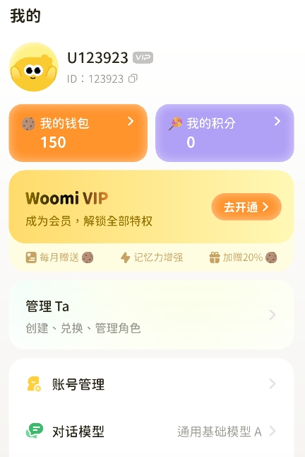 WoomiAI上线后就叫Woomi,由北京阿布萨智投科技有限公司推出,主打面向女性用户的陪伴型AI聊天体验。目前软件已进入公测阶段,里面内置了多种风格的AI角色,你可以按教程一步步找到心仪的对象开始对话,还能自由调整角色的长相、性格甚至成长背景,连对话模型和人设细节也能随时切换,满足不同场景下的聊天偏好。