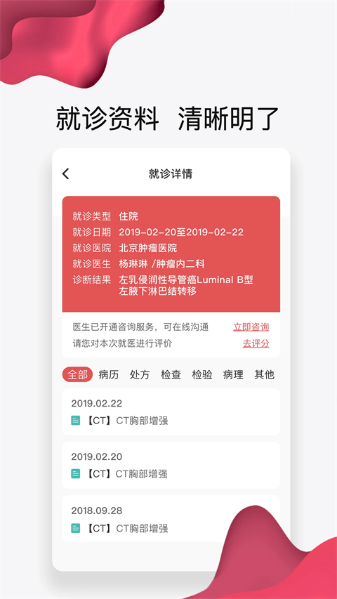 就诊完系统立刻把病历、报告、处方按日期打包,点开就能浏览。