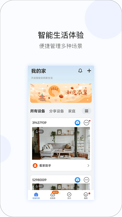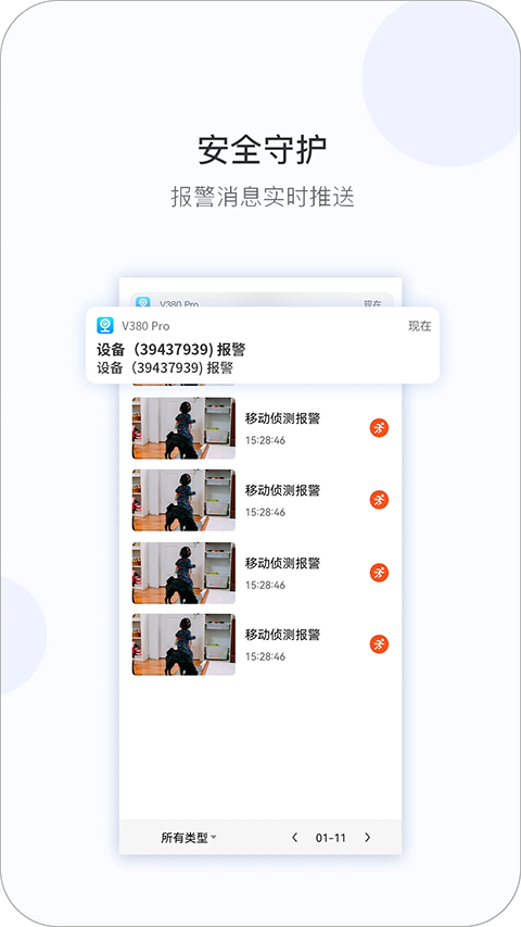 4、一个账号能分享十五个家人,权限分级,老人只看画面不能转云台。