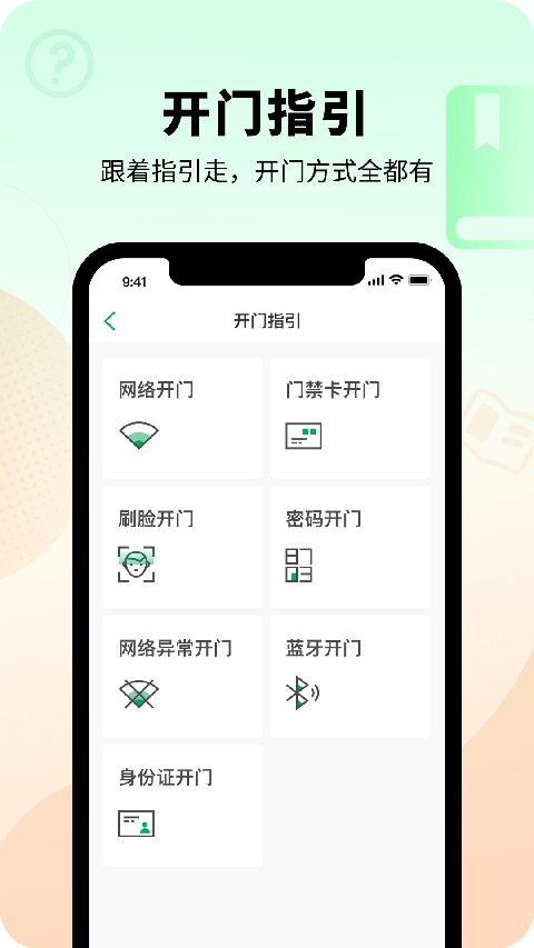 1、支持手机、身份证、CPU卡、二维码、人脸六种开门方式,老人小孩都能选最顺手的那一种。