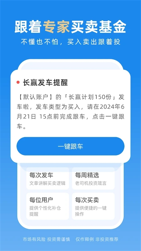 3、觉得靠谱就点一键跟投,系统自动帮你买入对应基金,之后还能随时查看收益。