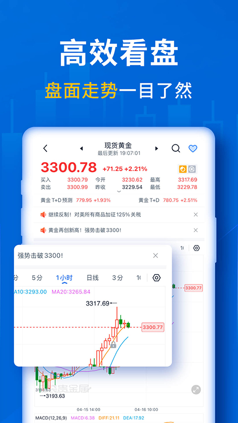 沪金沪银、纸黄金纸白银、国际现货、COMEX NYMEX LME这些全覆盖,K线分时多周期切换,价格走势看得明明白白。
