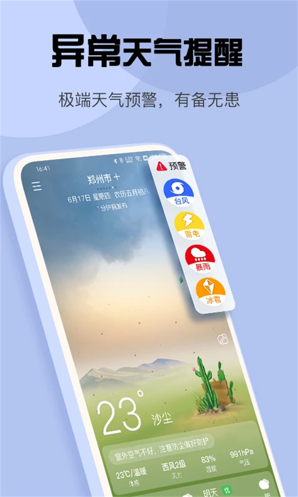 直接接入了国家级的预警系统,遇到台风或者暴雨这种极端天气,能提前五到十五分钟给你发通知。
