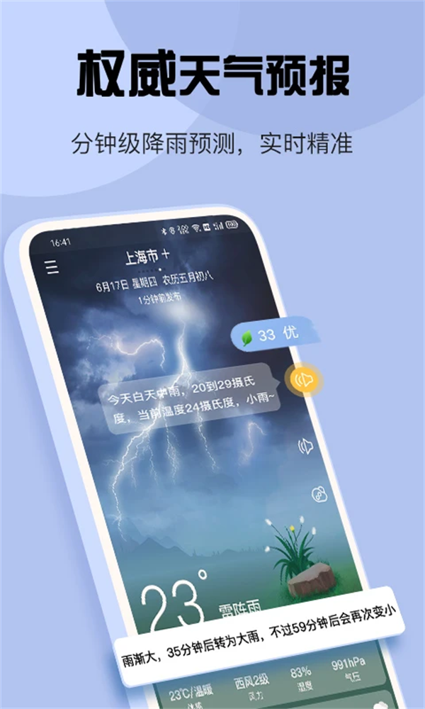 能够提供未来两小时内分钟级别的天气变化预测,特别适合想要出门跑步或者上下班通勤的时候看一眼。