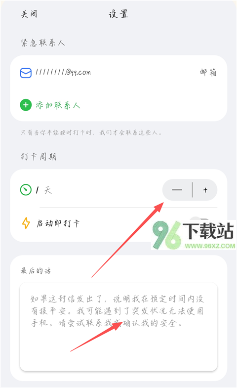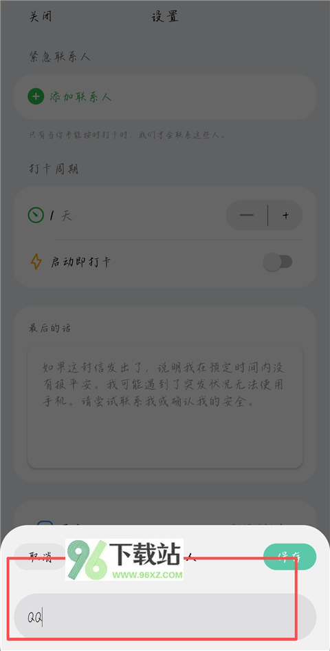 4、用户可设置打卡周期,并在下方【最后的话】中写下求助的话。