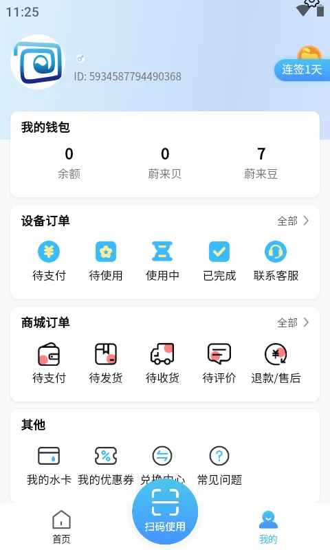 1、下载安装蔚来校园app后打开,用手机号或微信登录,几秒钟就进首页刷设备和充值入口了。