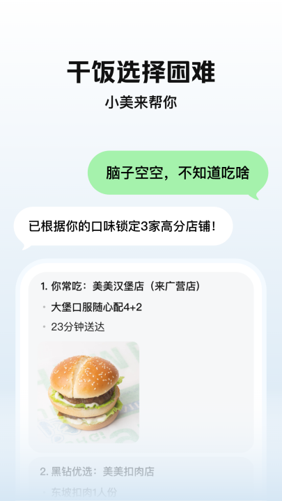 当你不知道午饭该吃什么的时候,它能根据你的口味给出建议,快速治好你的午餐选择困难症。