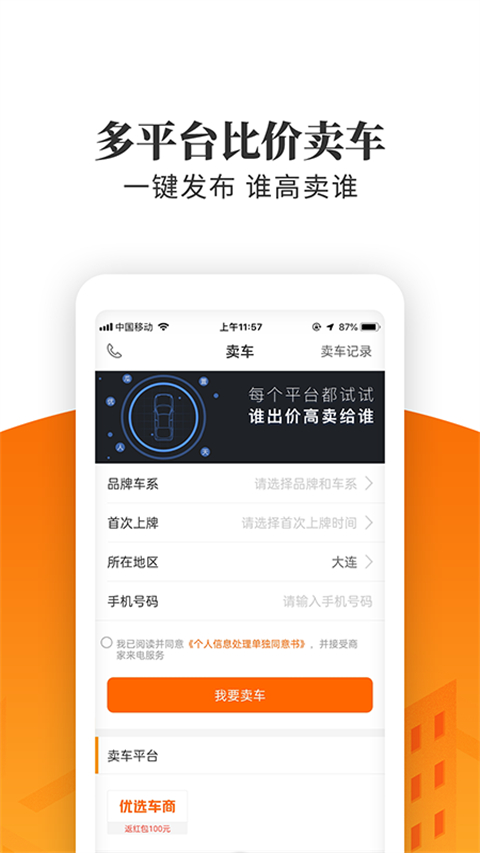 通过平台合作渠道成功售出车辆后,用户可领取一定额度的现金奖励。