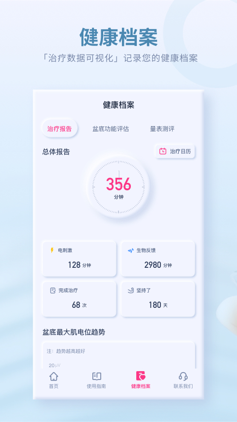 软件能通过连接仪器对盆底肌力进行一次深度的扫描测试,随后自动生成一份通俗易懂的体检报告,让大家对自己的身体底子先有个准确的把握。