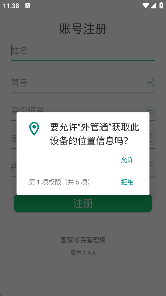 2、民警同志需要仔细查看并点击允许软件调用摄像头、地理位置以及存储空间等核心权限,这是后续进行证件扫描和人员定位的最基础保障。
