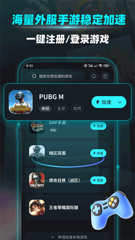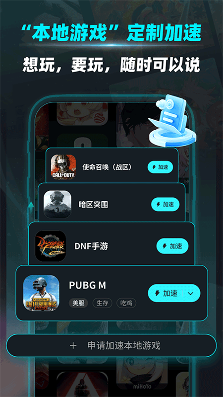冷门游戏没在列表?点“申请加速”填包名,技术小哥24h内给你单独拉线路。